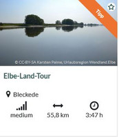Aber auch hinter den Deichen gibt es reizvolle Touren durch Geest und Marsch: Die Elbe-Land-, die Vogelkieker -, die Göhrde-Neetze Tour und die River-Hopping Tour garantieren ein abwechslungsreiches Natur- und Kulturerlebnis zwischen den Fähren Bleckede und Darchau. Die Radtouren sind zwischen 30 und 60 km lang, klar ausgeschildert, in Karten verzeichnet und in outdoor-active kostenlos herunterladbar.